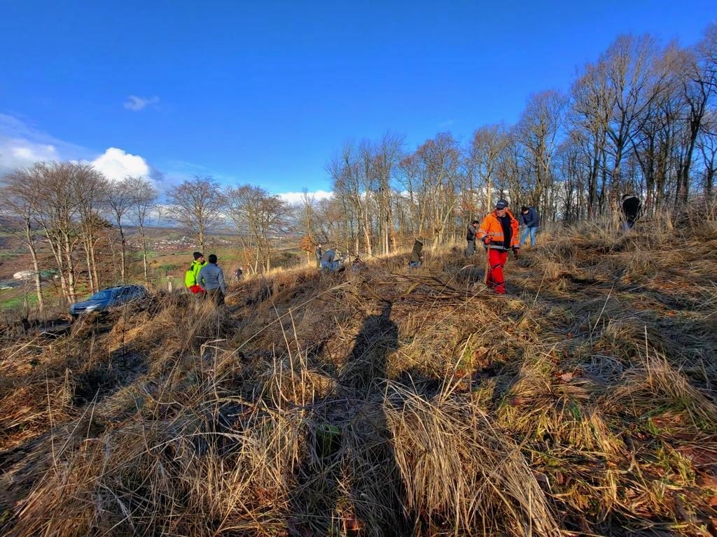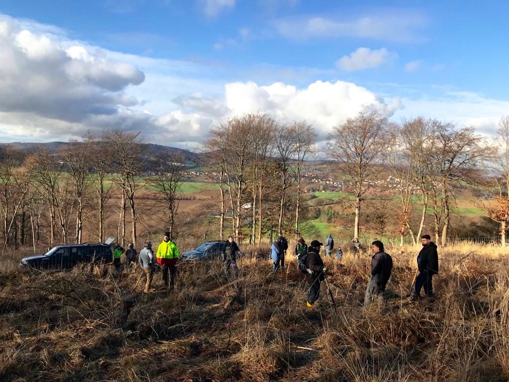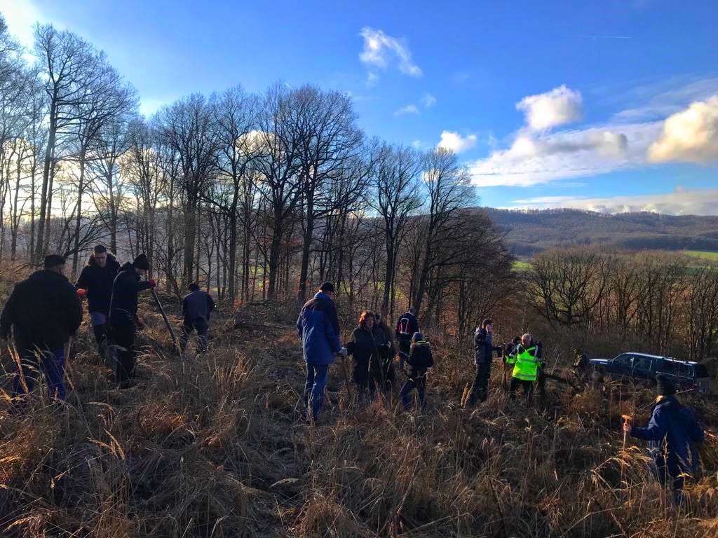 Bilder von der Aufforstung neuer Wildobstpflanzen unterhalb des Turmberg am 04.02.2023.